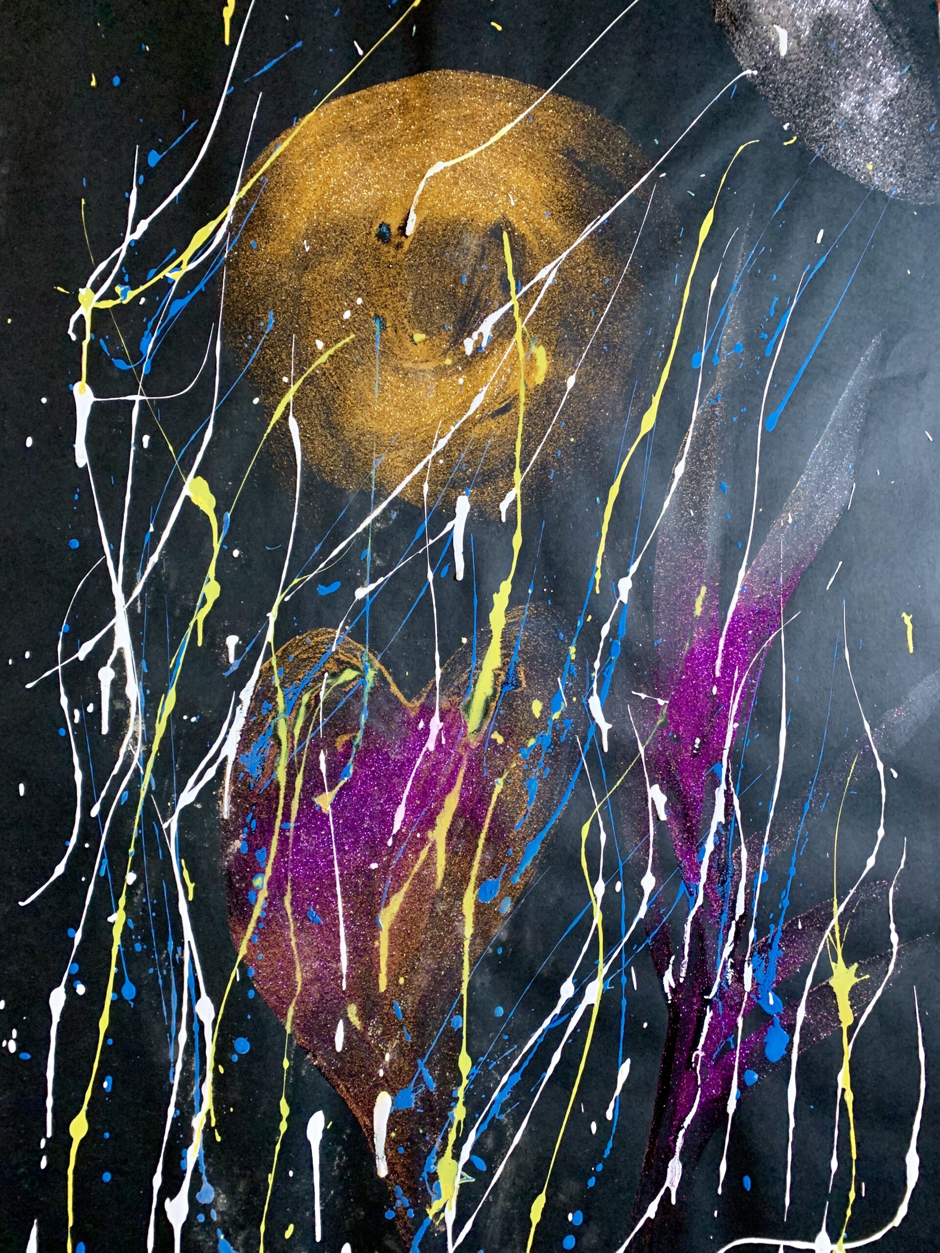 La victoire de la couleur Année/anno/year : 2019 Titre/titolo/title :La Victoire de la couleur Technique/tecnica : Le Tachisme sur carte noir Taille/dimensioni/dimensions : 100X70